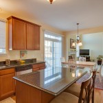 Within the kitchen the gleaming hardwood floors continue. Granite countertops and 42″ maple cabinets make this kitchen a focus of any entertaining that you may wish to host. The kitchen flows into an eat-in space and then into the grand and soaring great room.