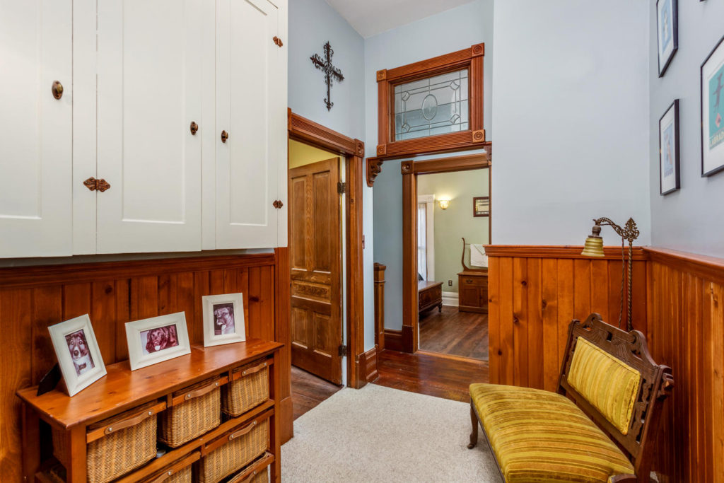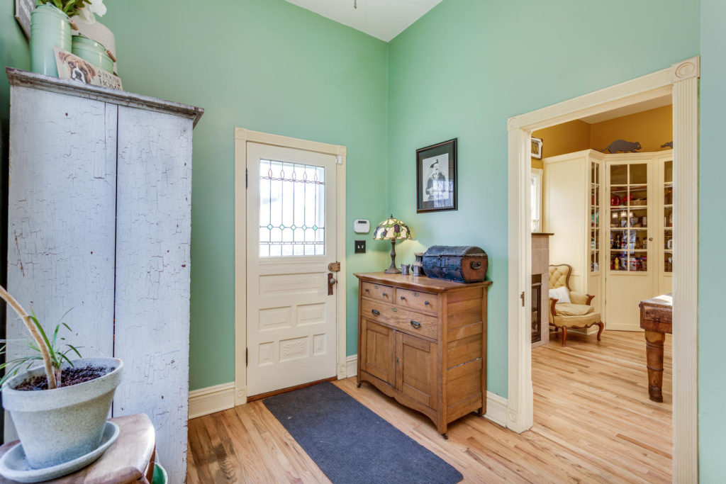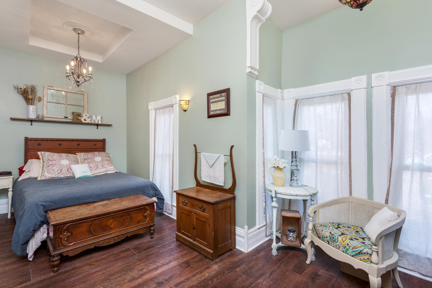This turn of the 20th century Victorian home was built in 1881, and features four bedrooms, and two full bathrooms. This home has been updated with newer windows, roof, heating and cooling, and kitchen, yet kept much of its old world charm. The original hardwood floors, and woodwork abound through this home. Stain-glass accents brighten some of the rooms in this stately home.
