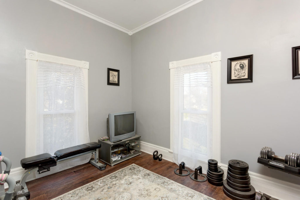 Upstairs, the master bedroom features an ensuite office. The upstairs full bath features a claw-foot tub, and separate shower. One guest room is currently used as a workout room. The other guest room features a tray ceiling and view out