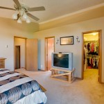 The master bedroom features a cathedral ceiling, generous walk-in closet and “soak your cares away” tub. Separated from the other bedrooms, the master bedroom is a true retreat from the everyday.