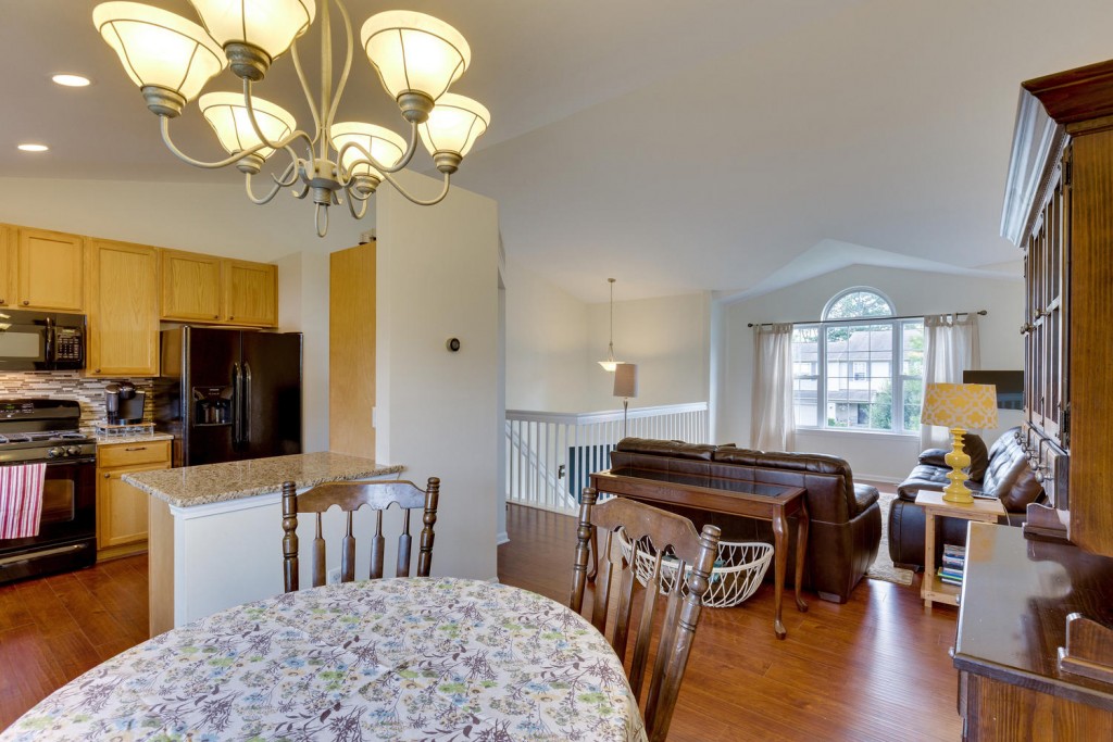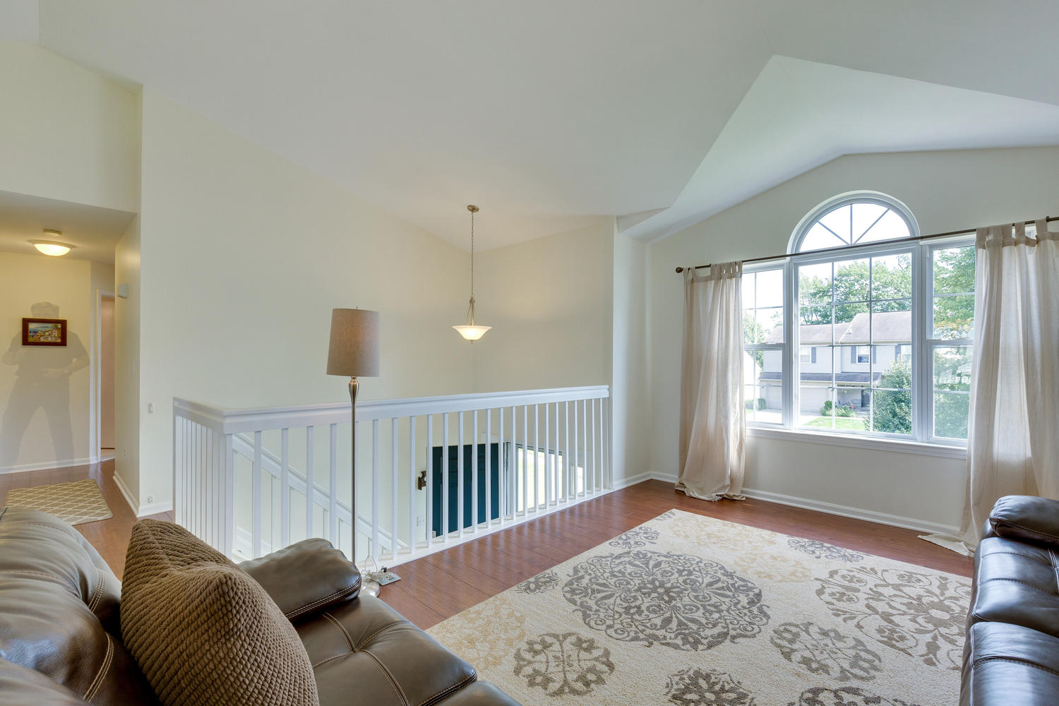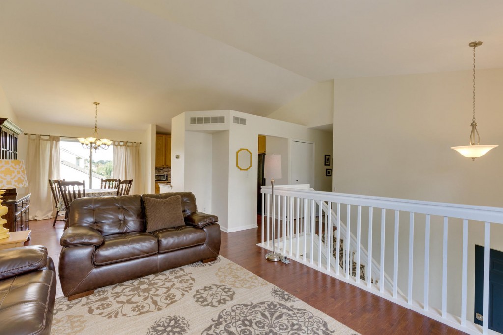 Entering 5478 Sandlewood Ct and proceeding up the stairs brings you to the main living level. A soaring, cathedral ceiling joins the Living Room, Dining Room and Kitchen. Generously sized windows in the Living Room and the Dining Room allow copious amounts of light to pour through this voluminous space.