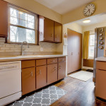 Flowing through the coved ceiling dining room, visitors can head into the kitchen or turn in to the two bedrooms on the first floor. The first floor also features a wonderful, tiled, full bath. This spacious kitchen features ample countertop and cabinet space.