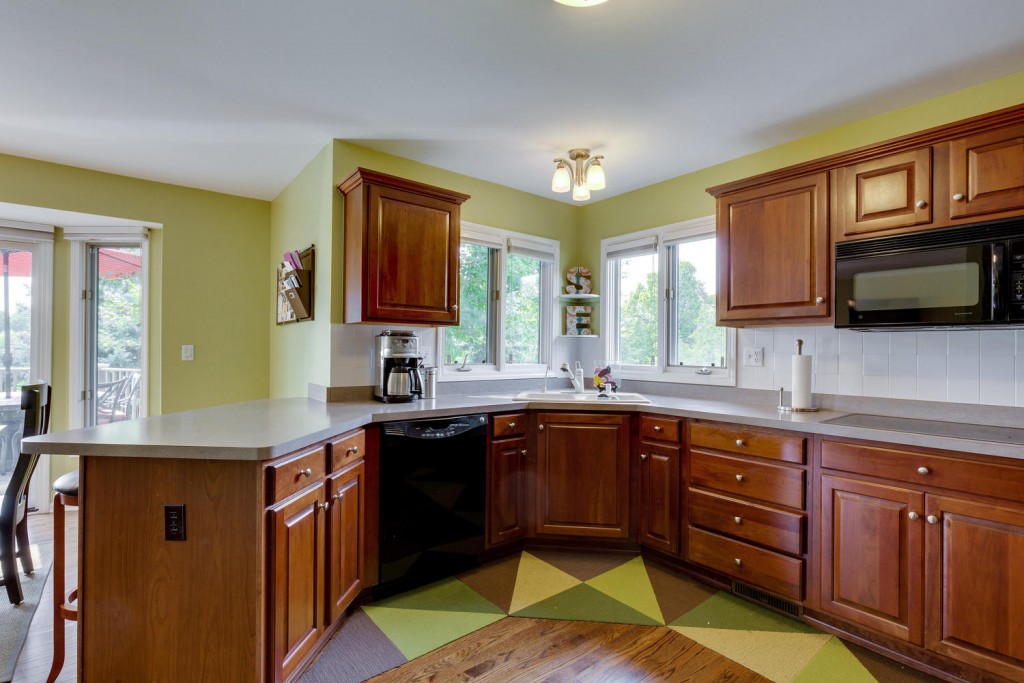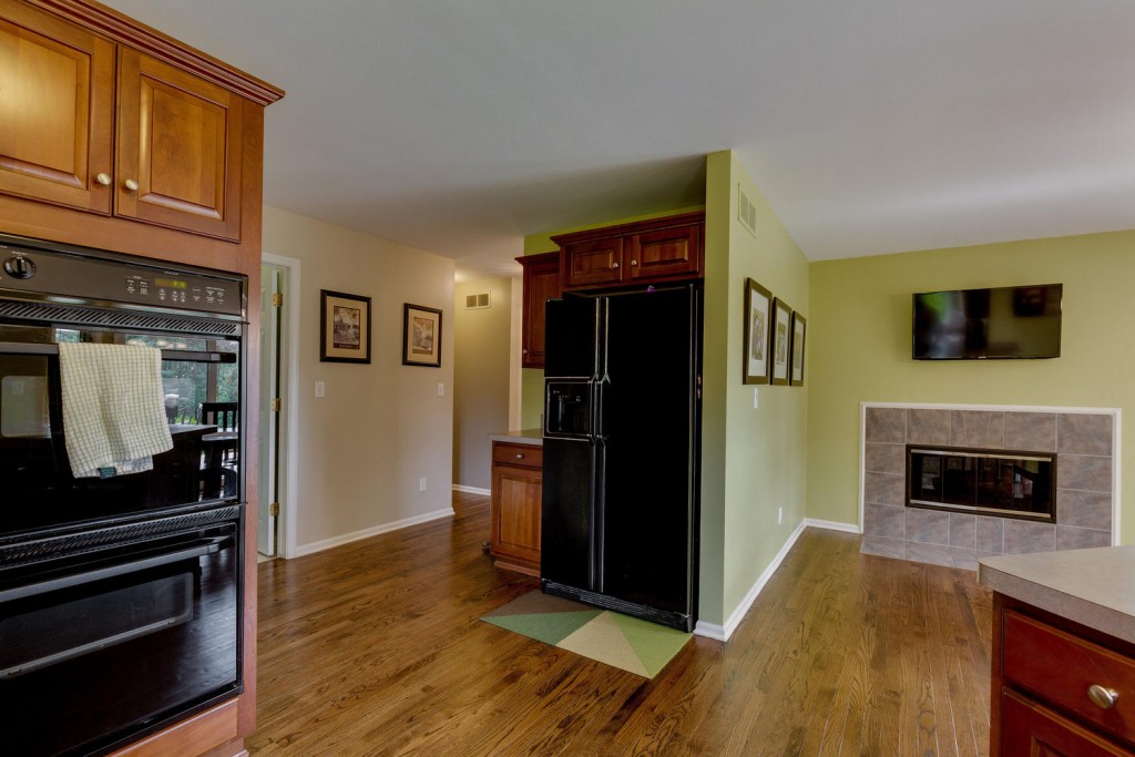 At the end of the welcoming foyer for this home is the great room. The hardwood floors bring you to newer, foot friendly carpeting, and generously sized windows that soak the space in natural light. A two-way, gas fireplace connects the great room with the eat-in portion of the kitchen. Separated by a short hallway and lavatory, the great room flows into the kitchen with ease, as you feet continue to follow the hardwood floors. The generously sized eat-in portion of the kitchen makes a great place for meals, a quick catch up on some work, or even getting some homework done.