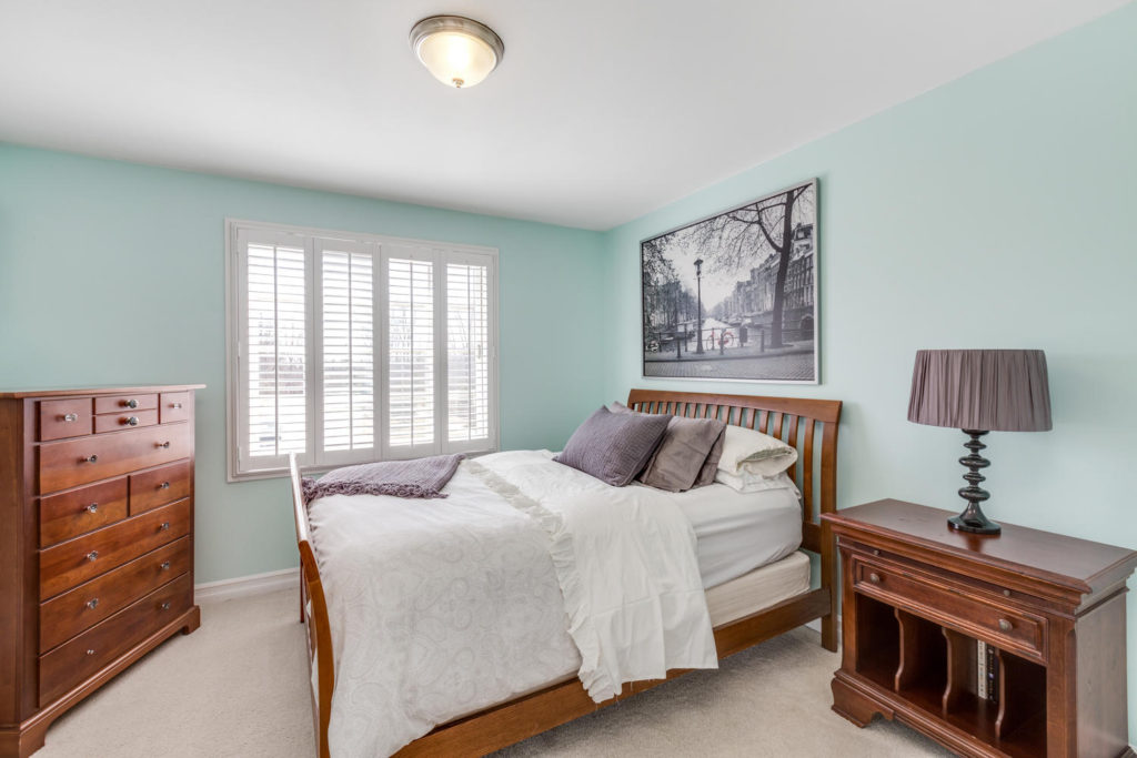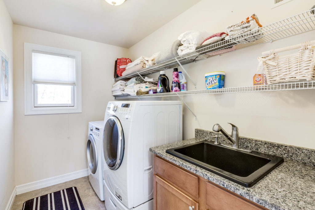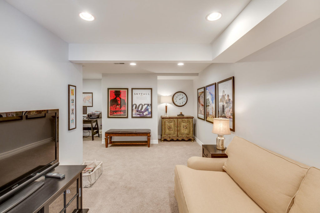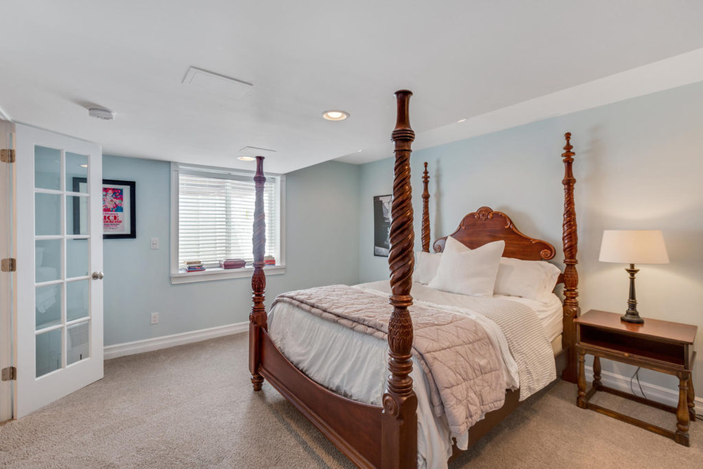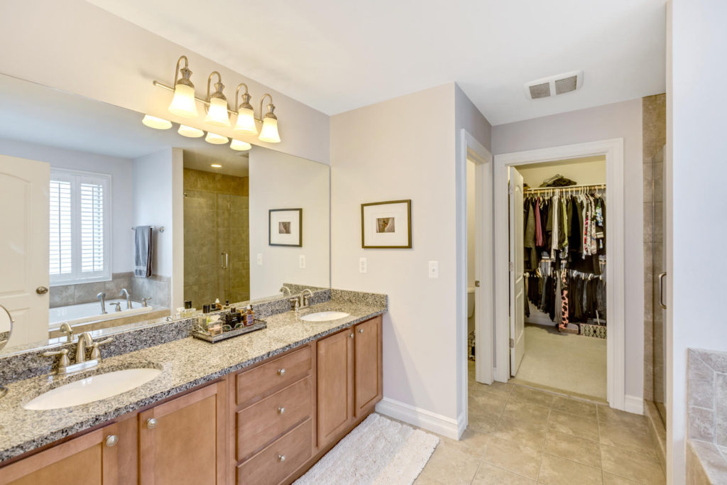 The kitchen features granite counters, 42″ cabinets, and a kitchen island that everyone will be jostling to join. The eat-in kitchen space flows seamlessly into the two-story family room. This space is further illuminated by clerestory windows and is perfect for watching a movie, or cozying up in front of the fireplace.