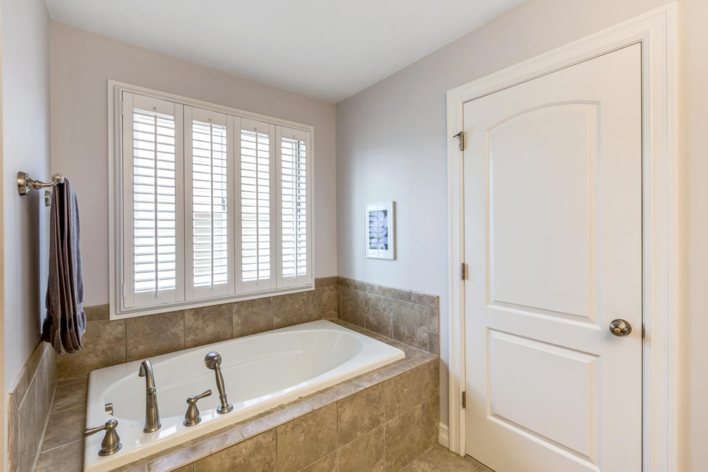 Details within this home include plantation shutters on most windows, arched entryways to first floor spaces, gleaming hardwood floors, neutral paint, and recessed lights.